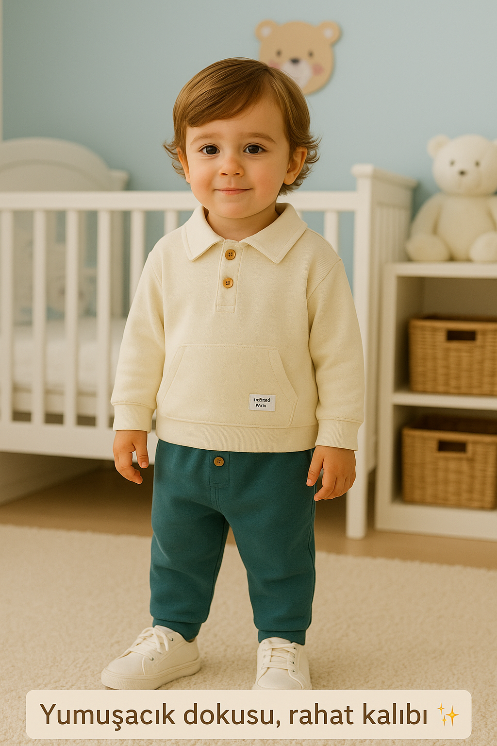 - Uzun kollu tasarımı ile bebeğinizin kollarını soğuktan korur ve rahat hareket etmesine olanak tanır.