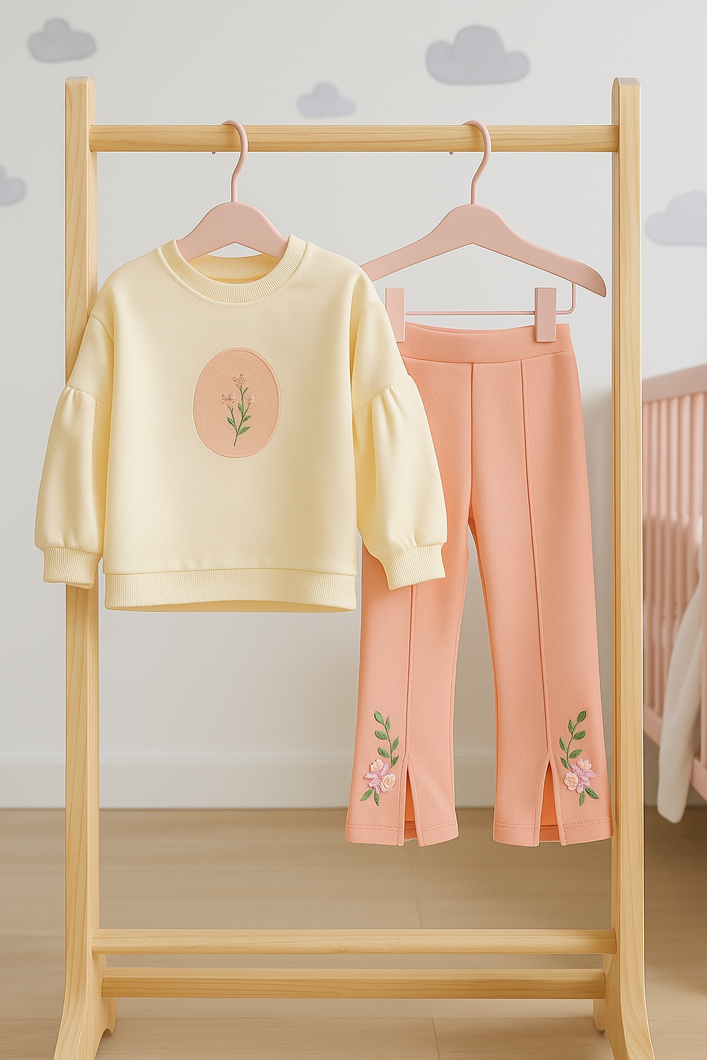 Bebeğinizin vücut hatlarına uyum sağlar ve konforlu bir giyim deneyimi sunar Kız çocuklar için uygun olan bu takım, şık ve zarif görünümüyle dikkat çeker.