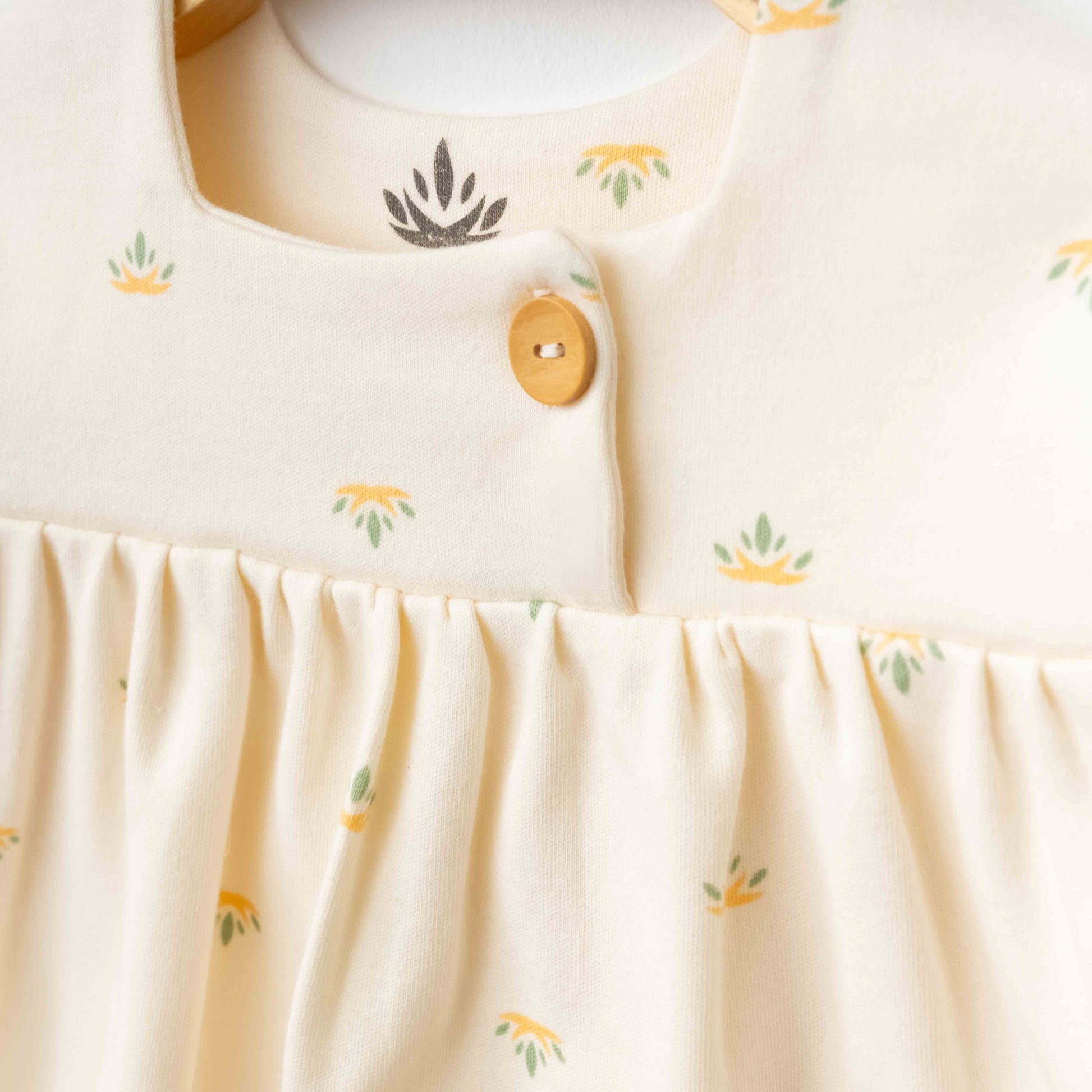 ÇİM DESENLİ ORGANİK KIZ BEBEK ELBİSE